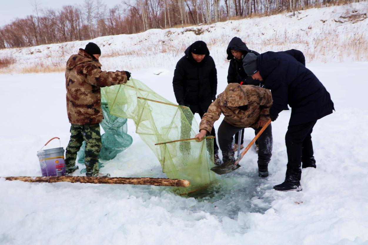 林業(yè)局職工在黑龍江畔冬捕情景(王力 攝)