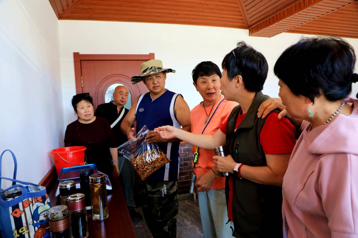 龍河林場(chǎng)職工向游客銷(xiāo)售林下產(chǎn)品(王力 攝)