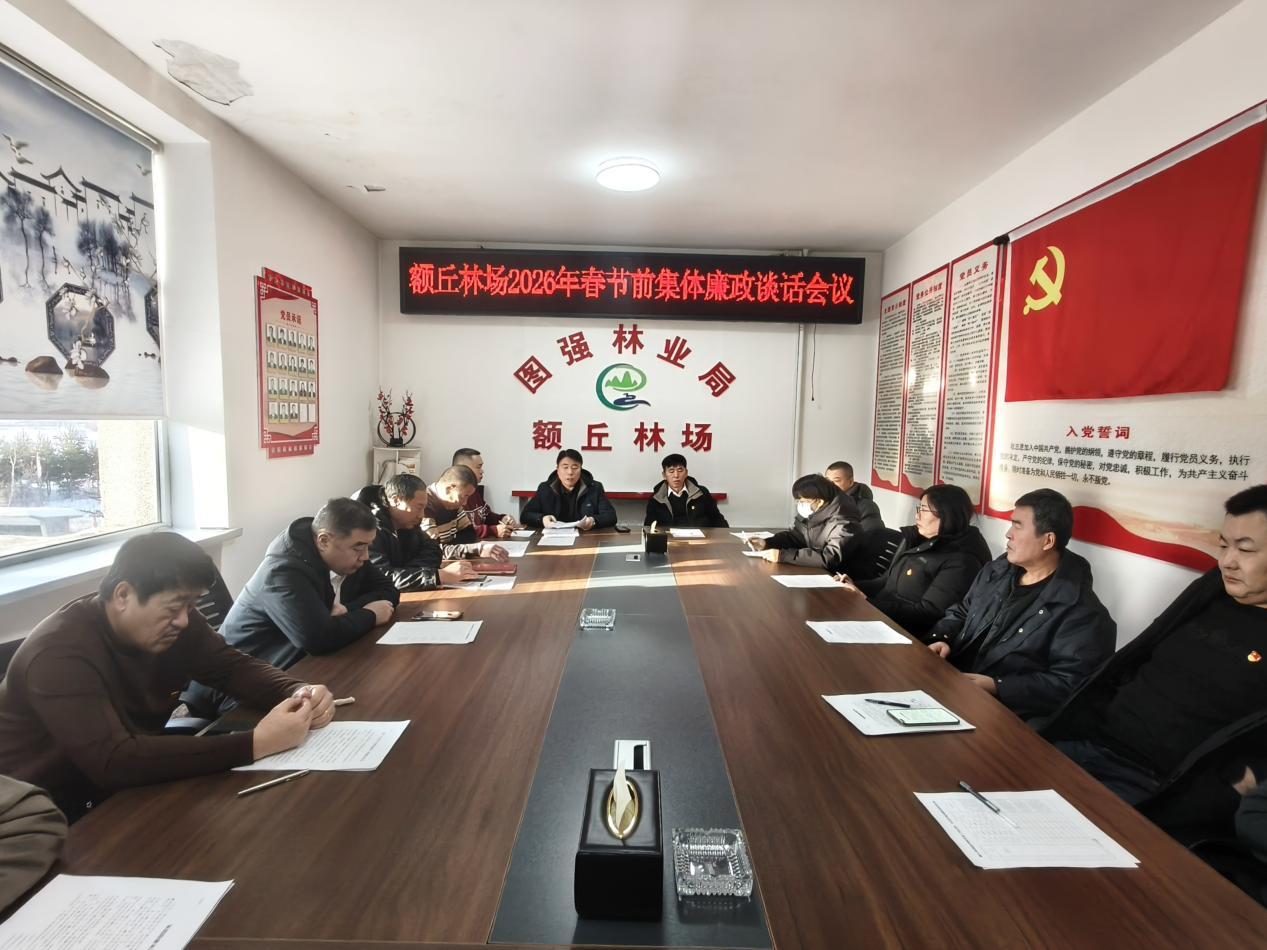 廉政談話明底線,承諾踐諾守初心。額丘林場召開春節(jié)前集體廉政談話會,專題傳達學習上級關于春節(jié)期間廉潔過節(jié)的通知要求,原文解讀相關通知精神與紀律規(guī)定,確保全體黨員干部精準把握節(jié)日廉潔核心要義。會議結合關鍵崗位風險特點,聚焦違規(guī)收送禮品禮金、違規(guī)吃喝等易發(fā)“節(jié)日病”,明確禁止性要求,督促黨員干部繃緊紀律之弦。談話會后,組織全體黨員簽訂《春節(jié)期間廉潔自律承諾書》,承諾書緊扣上級要求梳理8項核心準則,從遵守中央八項規(guī)定精神到杜絕違規(guī)操辦婚喪喜慶事宜,逐條細化規(guī)范,推動廉潔要求內化于心、外化于行。