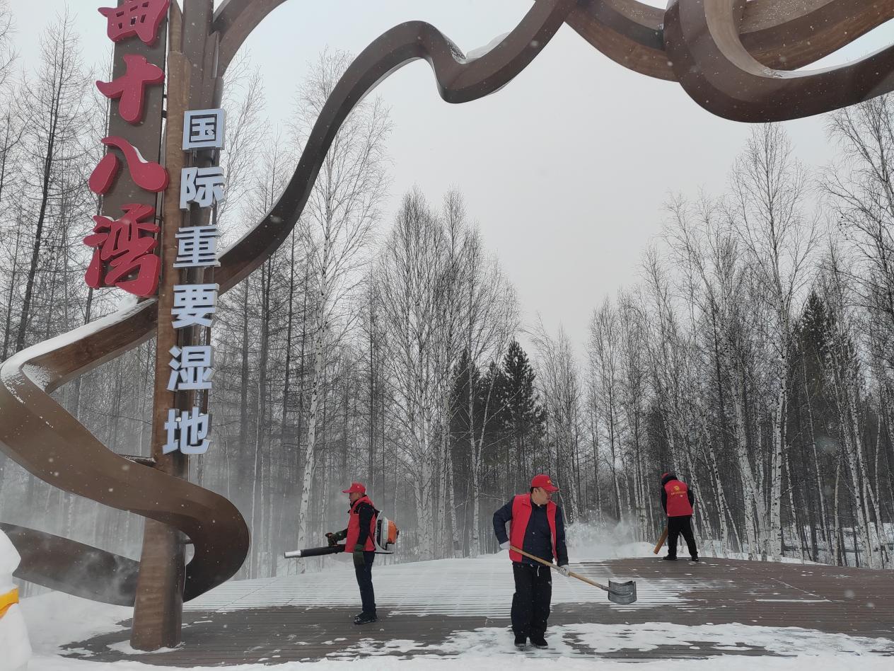 扮靚林海家園,守護(hù)平安出行。志愿者們走上街頭,手持雪鏟、垃圾夾、垃圾袋等工具,對轄區(qū)道路兩側(cè)、公共區(qū)域開展集中清潔,重點清理積雪殘冰、白色垃圾及公共設(shè)施小廣告,以實際行動倡導(dǎo)綠色低碳生活方式,引導(dǎo)群眾養(yǎng)成文明衛(wèi)生習(xí)慣,共同守護(hù)整潔優(yōu)美的人居環(huán)境。針對景區(qū)積雪積冰問題,志愿者們分工協(xié)作、鏟冰除雪,清理步道、觀景臺等重點區(qū)域,及時消除安全隱患,全力保障游客和群眾出行安全。嚴(yán)寒中忙碌的身影,成為春日里最動人的風(fēng)景,以實干彰顯奉獻(xiàn)本色,用堅守傳遞雷鋒溫度。