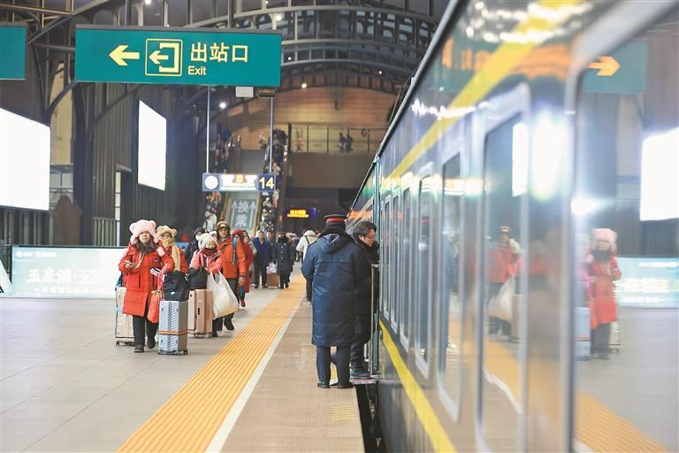 在精準(zhǔn)提升亞布力方向運(yùn)力的基礎(chǔ)上,哈爾濱局集團(tuán)公司充分發(fā)揮高鐵成網(wǎng)運(yùn)營優(yōu)勢(shì),深化鐵路與旅游深度融合,將春運(yùn)運(yùn)行圖打造為助力地方發(fā)展的“冰雪經(jīng)濟(jì)圖”,串聯(lián)起哈爾濱冰雪大世界、橫道河子小鎮(zhèn)、中國雪鄉(xiāng)等一眾冰雪旅游熱門打卡地。今年春運(yùn)期間,哈爾濱局集團(tuán)公司計(jì)劃增開臨時(shí)旅客列車5632列,日均增加運(yùn)力近7.1萬個(gè)席位,高峰期單日最高開行列車724列,運(yùn)輸能力同比增長9%,創(chuàng)歷史新高。