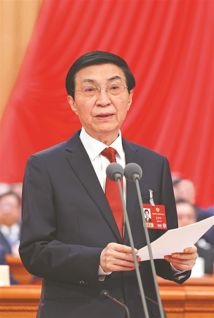 全國(guó)政協(xié)主席王滬寧主持閉幕會(huì)并講話。新華社記者 黃敬文攝