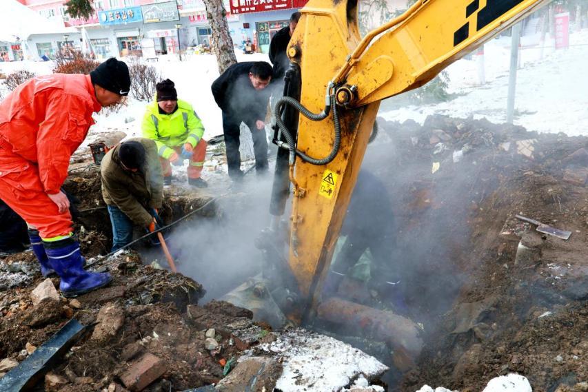 此次搶修時間緊、任務重,若未能及時處置,不僅可能導致支線管網(wǎng)凍裂,更會影響2號換熱站覆蓋的樓房、商服及居民用戶的正常供暖。面對突發(fā)險情,林業(yè)局迅速啟動供暖應急搶修預案,相關人員第一時間趕赴現(xiàn)場,反復研究制定最優(yōu)搶修方案。