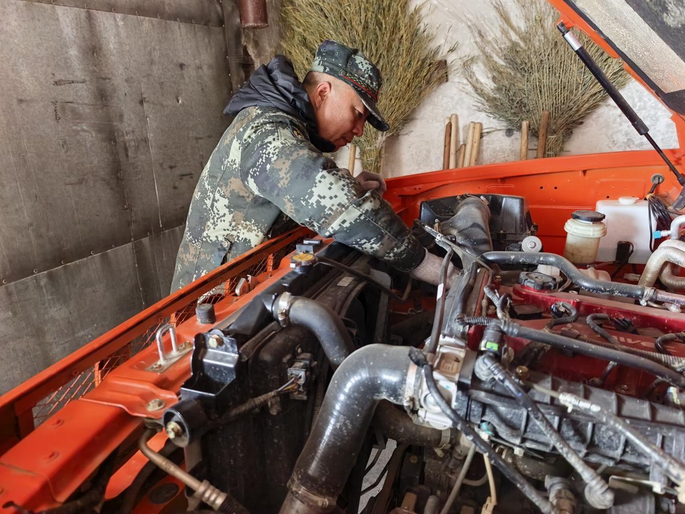 林場技術(shù)人員正在檢修維護防火車輛(柏松 攝)