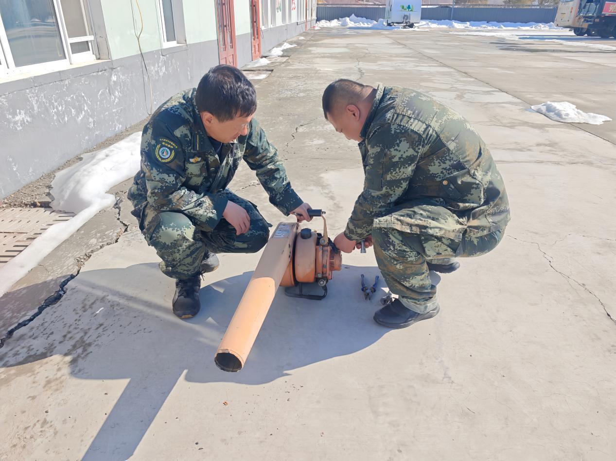 林場專業(yè)人員正在檢修風力滅火機(李輝 攝)