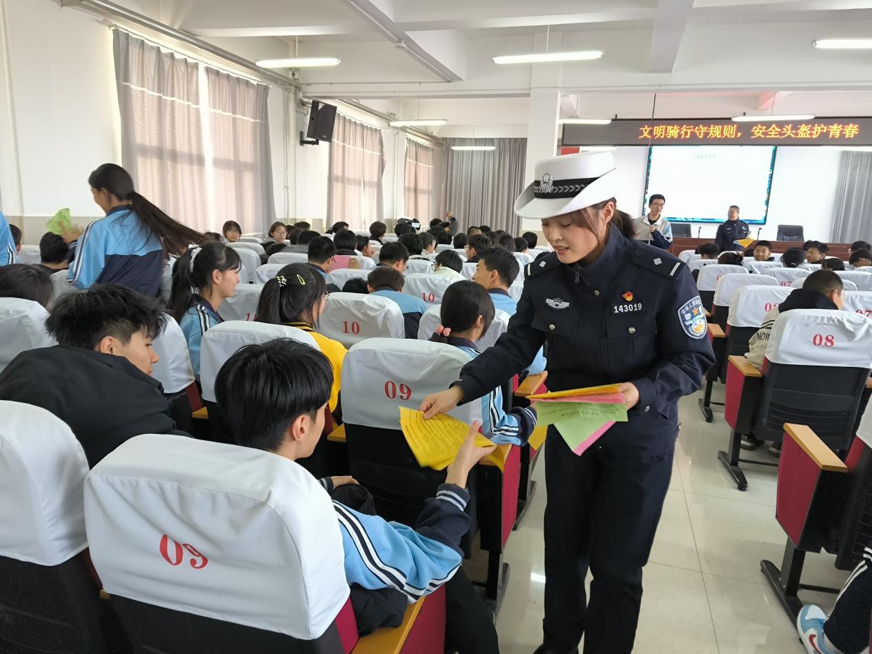 考慮到高中生群體的特點,且部分學生上下學有騎行電動自行車的需求,在宣講現(xiàn)場,民警用通俗易懂的語言、貼近校園周邊的案例,圍繞電動自行車駕乘安全這一核心,展開交通安全知識講解。并通過播放典型事故案例視頻,以案說法,直觀展示了未佩戴頭盔在發(fā)生碰撞時頭部遭受致命傷害的慘痛后果,以及多人合乘一輛車、追逐打鬧等行為帶來的失控風險?;顒蝇F(xiàn)場還設置了互動問答環(huán)節(jié),同學們踴躍參與,在輕松氛圍中鞏固了“知危險、會避險”的交通安全知識。