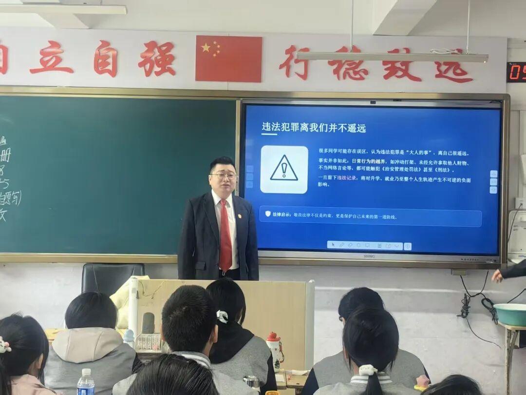 深入班級,互動(dòng)答疑解惑。集中宣講結(jié)束后,趙世奇走進(jìn)各班級,開展小范圍、針對性更強(qiáng)的法治輔導(dǎo)。根據(jù)不同班級學(xué)生的年齡特點(diǎn)以及日常相處中暴露出的微小矛盾、行為偏差,進(jìn)行“點(diǎn)對點(diǎn)”法律指導(dǎo)。在班級課堂上與學(xué)生近距離圍坐交流,耐心解答學(xué)生提出的法律疑問,并結(jié)合班級實(shí)際發(fā)生的典型小事,將法律知識細(xì)化到學(xué)習(xí)生活的具體場景中。這種面對面、心貼心的互動(dòng)方式,讓法治教育更加鮮活、可感,真正實(shí)現(xiàn)了普法宣傳全覆蓋、無死角。