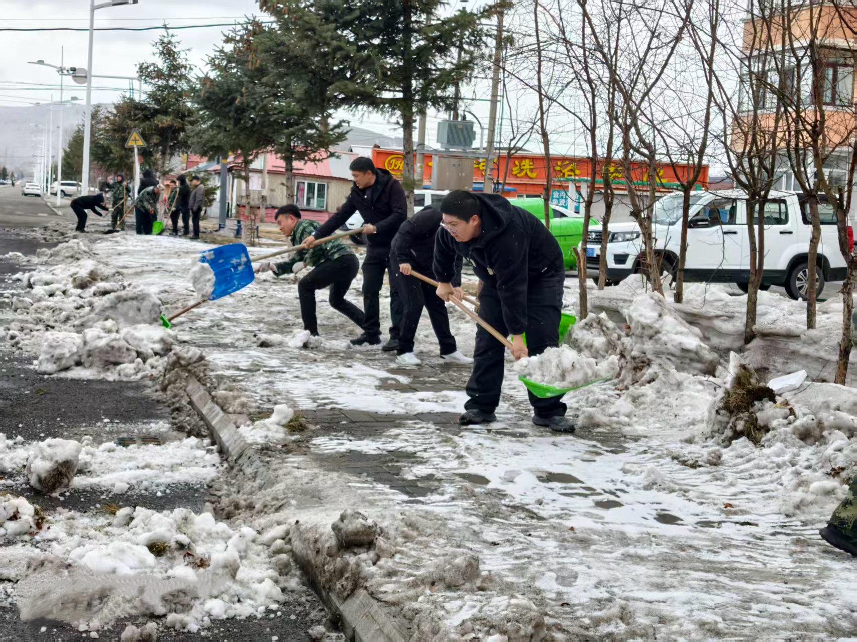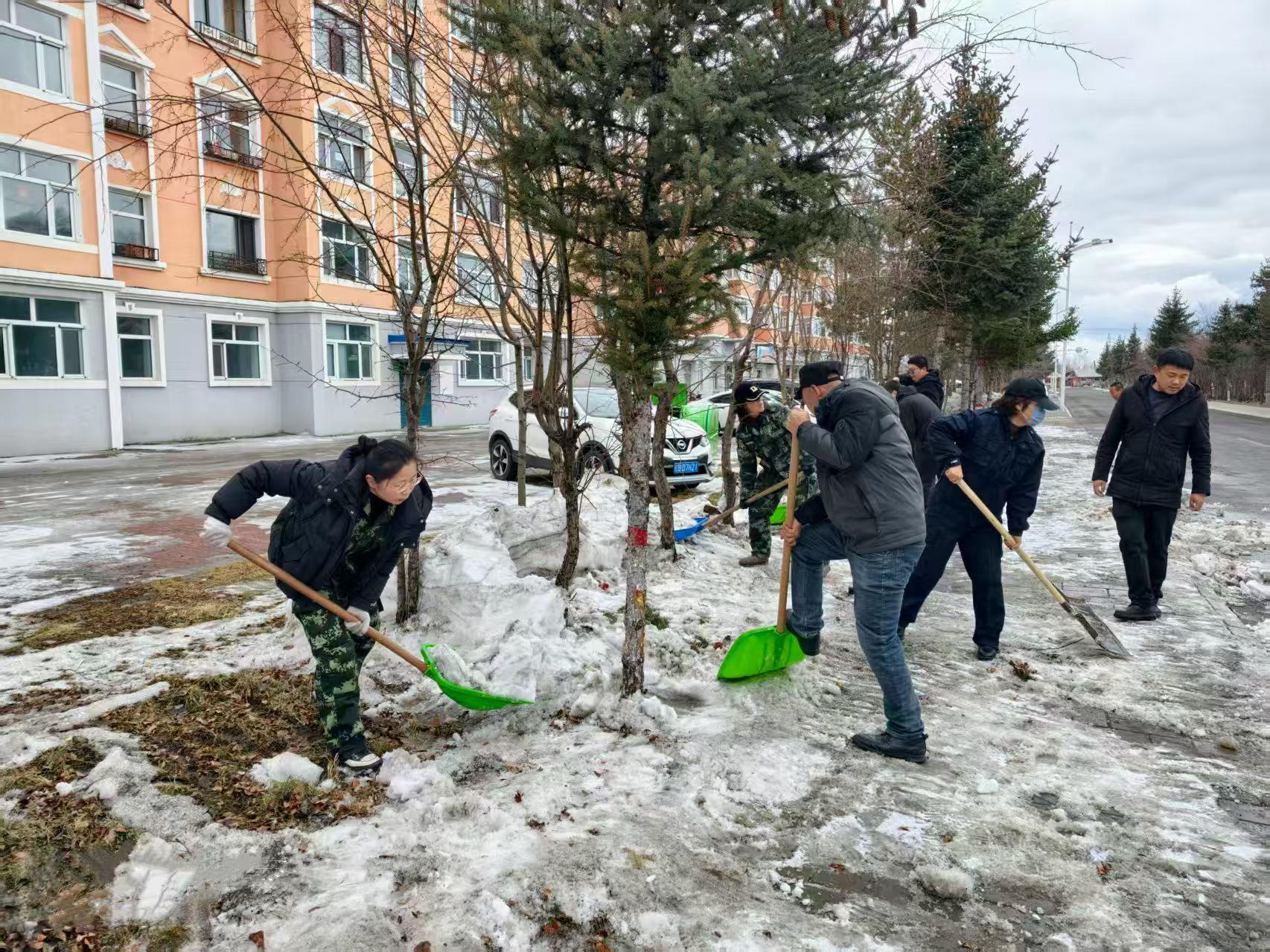 行動中,林場全體干部職工20余人對分擔(dān)區(qū)內(nèi)裸露的白色垃圾、雜物雜草等進行了全面的清理。寒風(fēng)里,義務(wù)勞動的現(xiàn)場一片熱火朝天。同志們手持工具,分工協(xié)作、干勁十足。有的揮動鐵鎬,刨開凍硬的積雪,一鎬一鑿鏗鏘有力;有的手持鏟鍬,將碎雪與雜物歸攏成堆,動作麻利有序。在道路兩側(cè)的綠化帶內(nèi),割灌機轟鳴作響,清理雜亂枝杈,讓林木整齊舒展;手持耙子的同志俯身勞作,細細摟凈地面雜草枯葉,清出一片整潔林地。裝車現(xiàn)場更是繁忙,眾人合力將枯枝、雜物、積雪塊搬運裝車,此次環(huán)境衛(wèi)生大清理,共清運各類垃圾、積雪10余車。