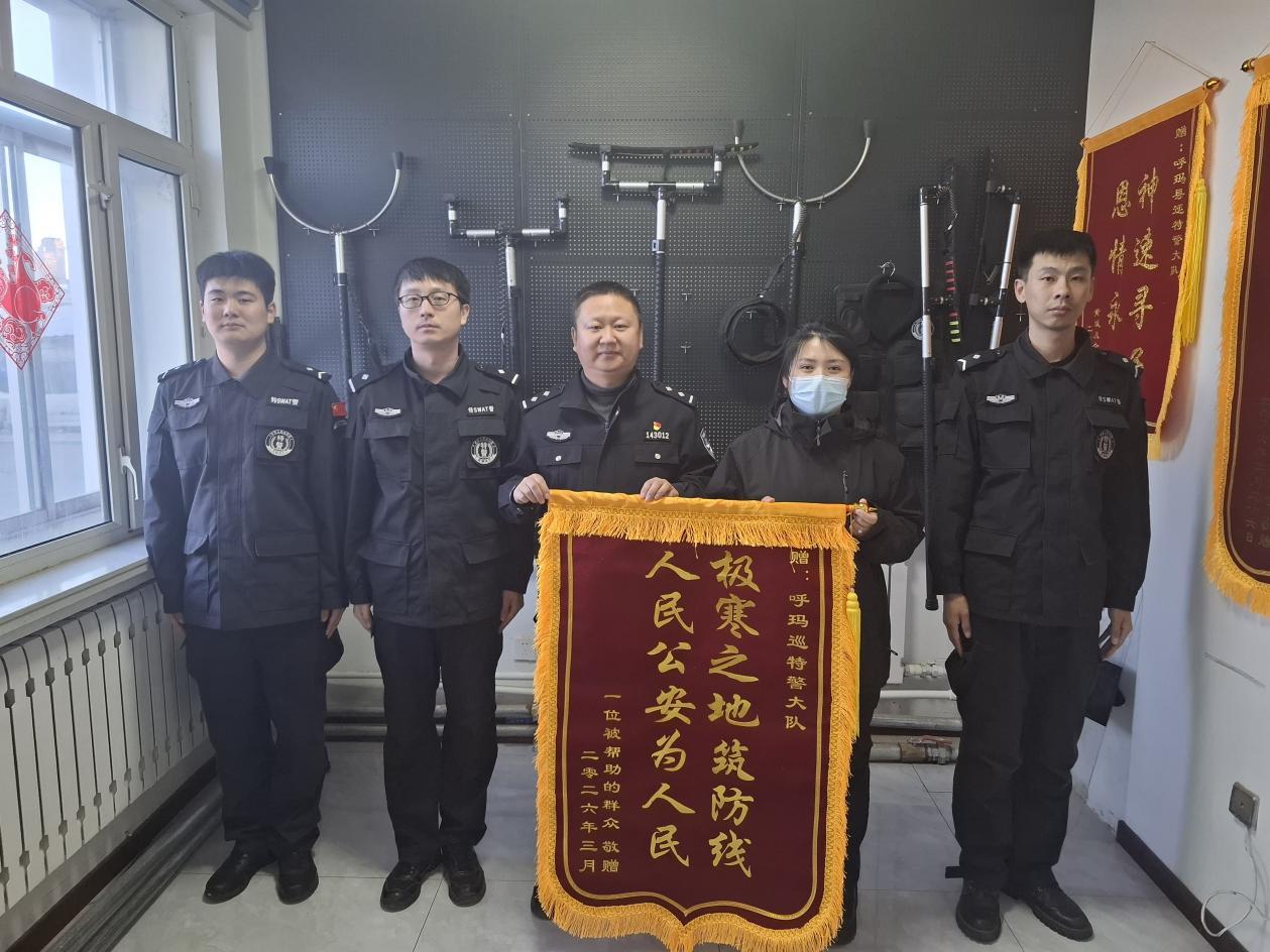 呼瑪公安雪中救援受困車輛獲贈錦旗